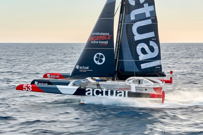 🌏 Nous leur souhaitons tout le succès possible à l'occasion de la TRANSAT CAFÉ L’OR Le Havre Normandie à bord de l'Actual Ultim 4!